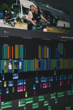 I also guide couples on aspects they don’t always expect. This can be as simple as suggesting a quiet moment during the day for natural footage, or recommending pre-wedding activities such as a welcome dinner or a relaxed couple session, like for the wedding of Nicole & Jack in Thailand for which we planned excursions together with their friends before the wedding. These moments often become essential in building a more complete and personal film.